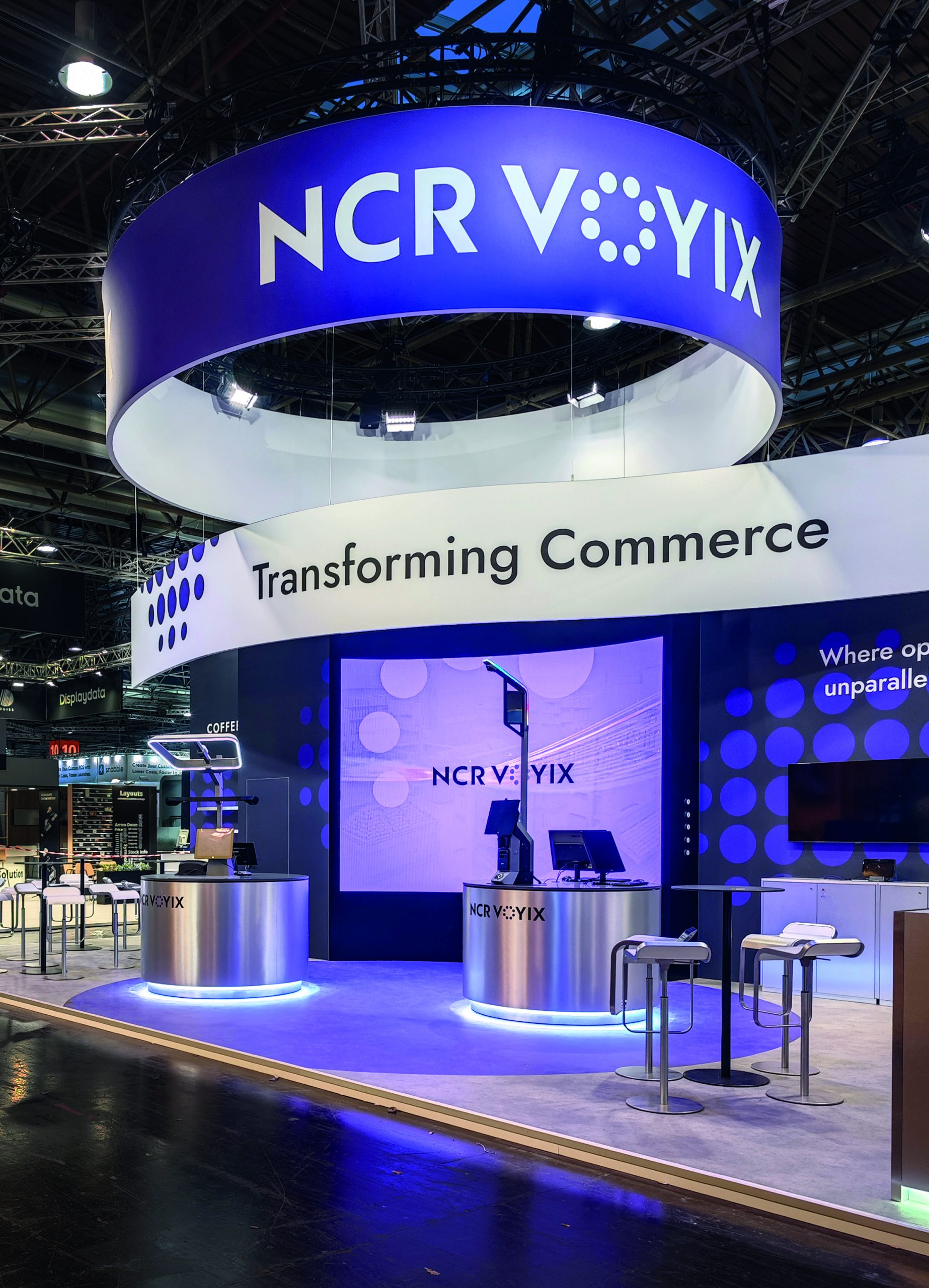 Der violette Puls von NCR Voyix ist auf der Messe nicht zu übersehen. Ein Stand, der nicht nur Farbe bekennt, sondern Zukunft verkörpert.