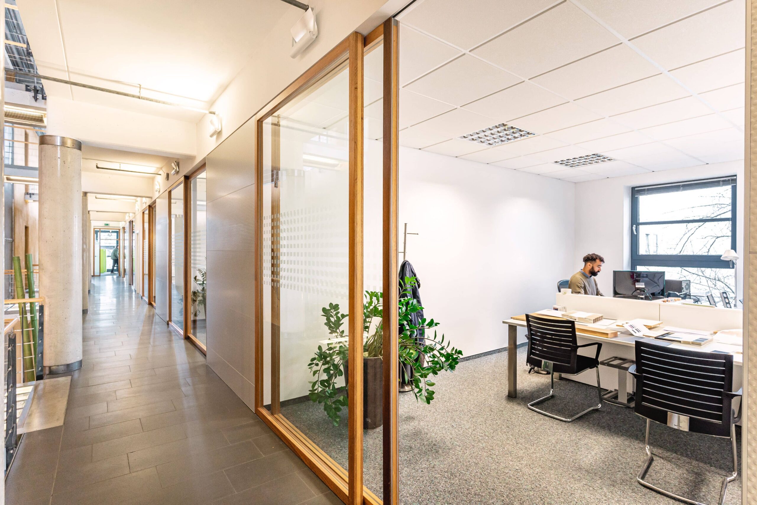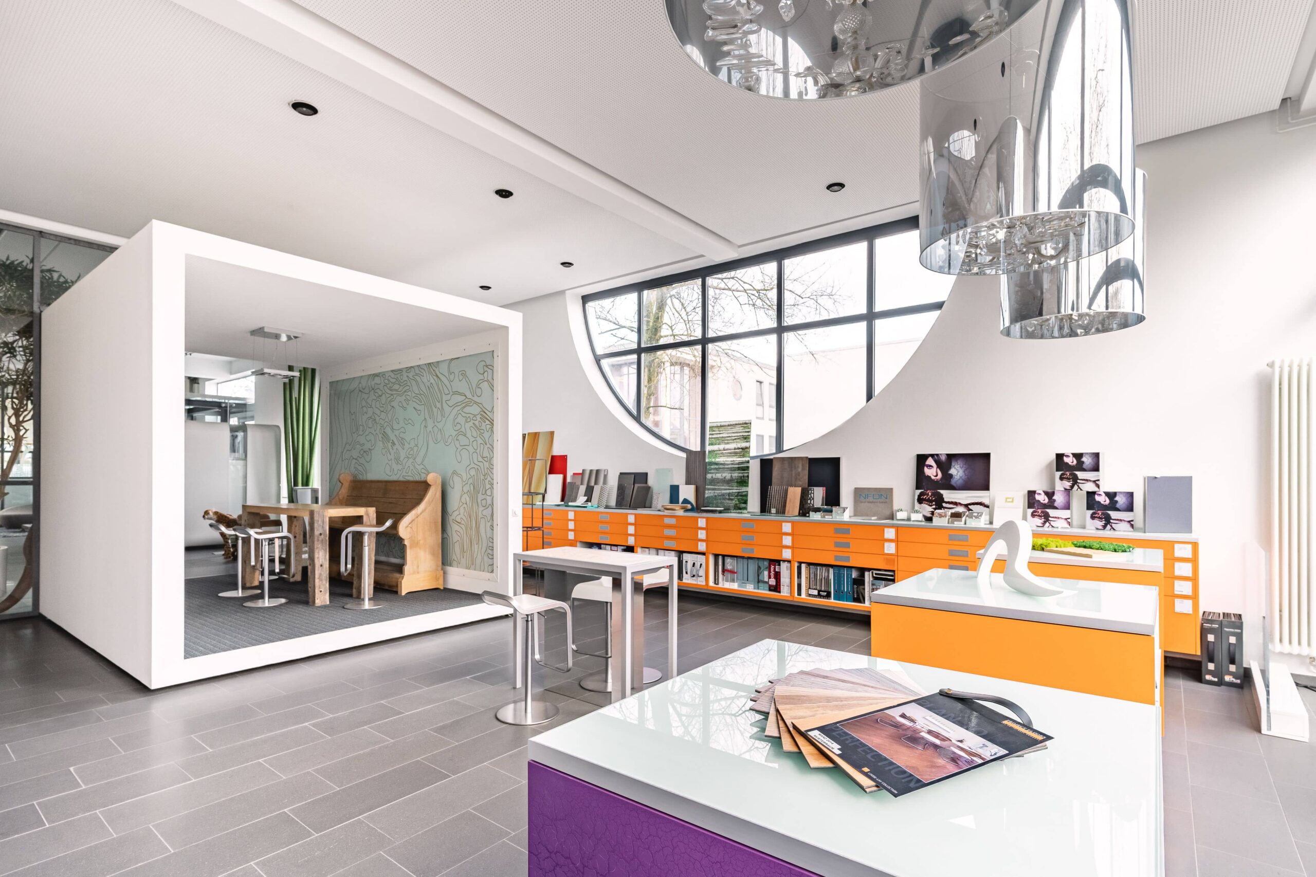 Die offene Struktur des Gebäudes fördert Kommunikation und Transparenz – passend zur engen Zusammenarbeit zwischen Messebau und Architektur unter einem Dach.
