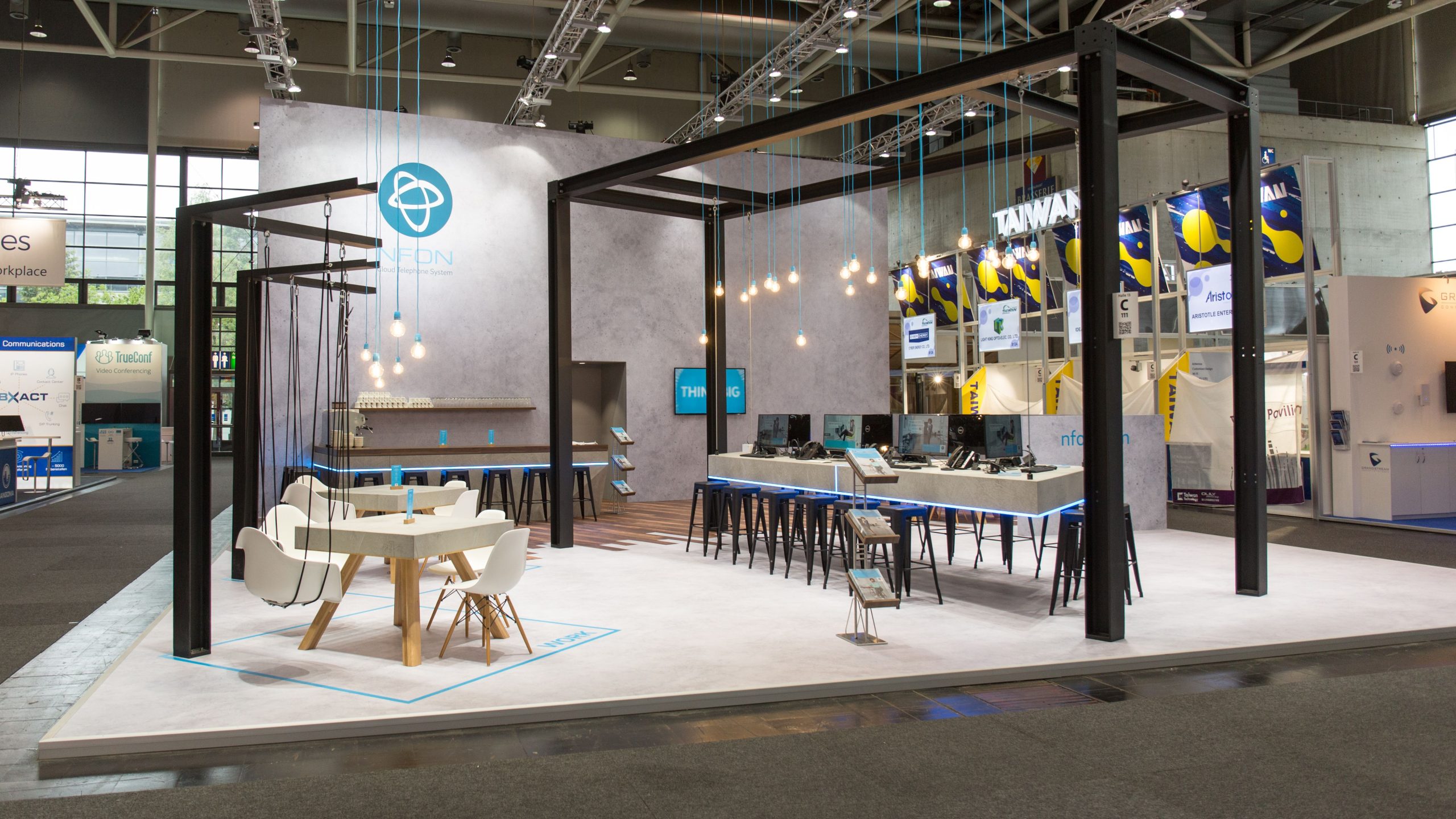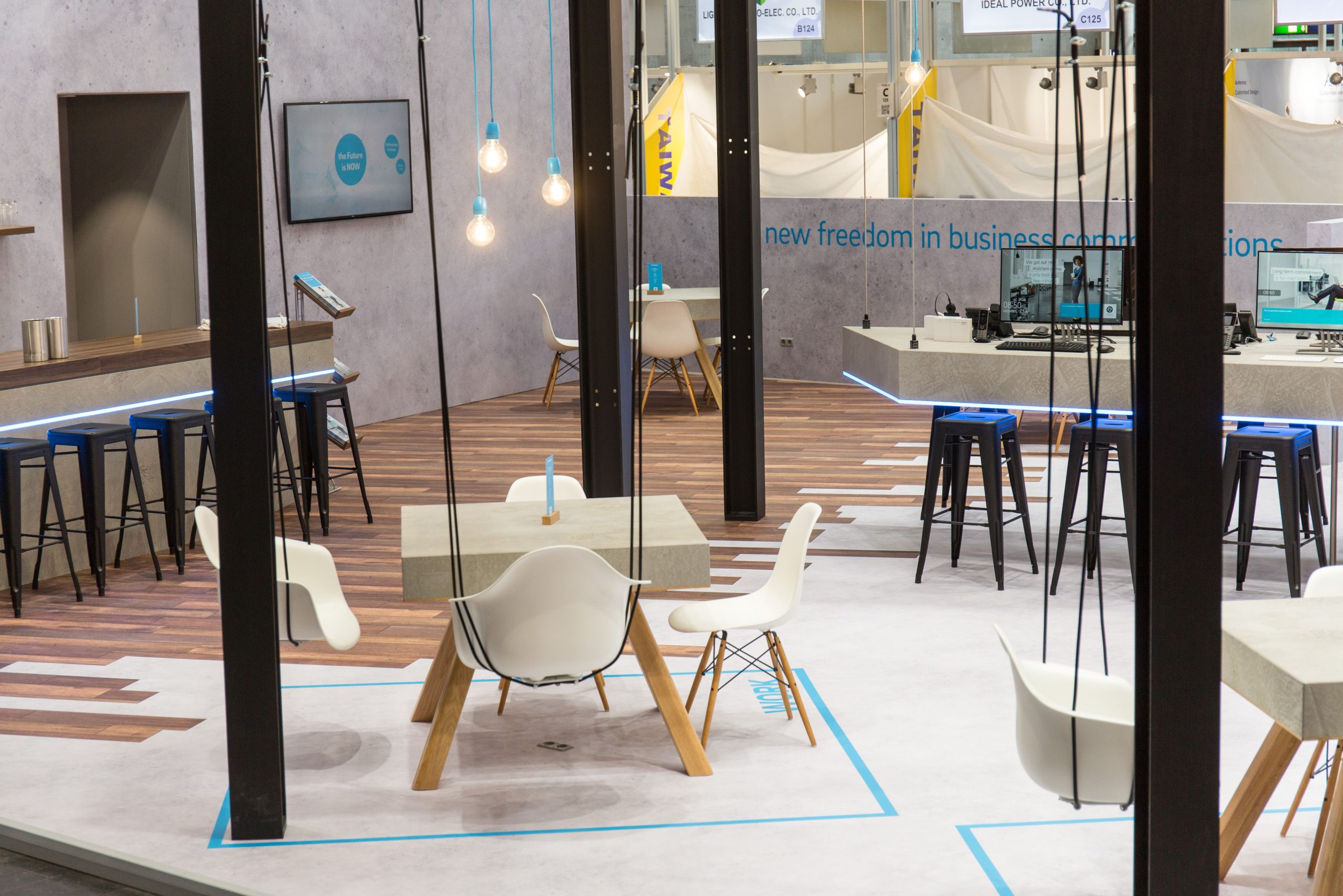 Diese Leichtigkeit haben wir in eine erlebbare Dimension übersetzt: Schwebende Möbel und eine verspielte Lichtinstallation ziehen Besucher magisch an und verleihen dem Raum eine Atmosphäre von Inspiration und Dynamik.
