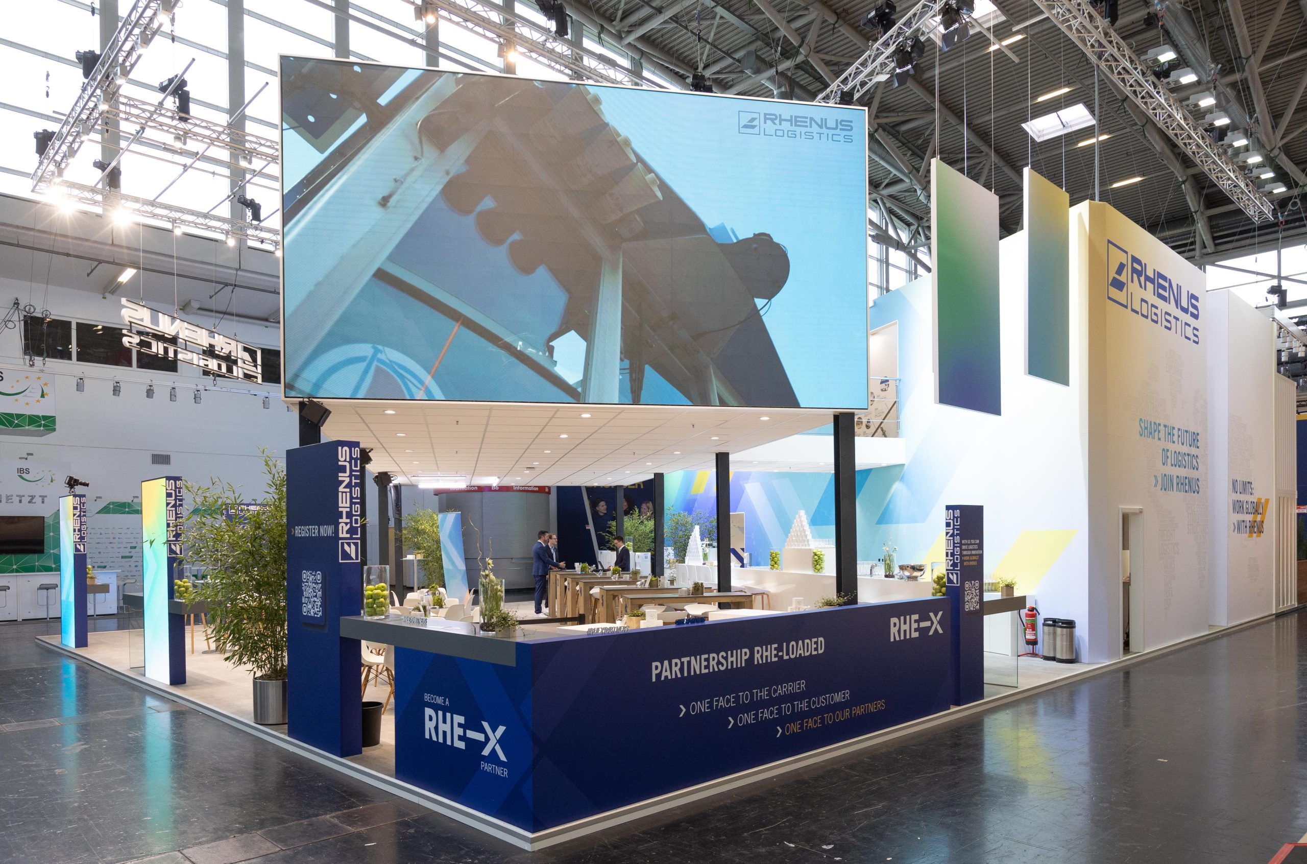 Hier entstehen Ideen, hier kommen Menschen ins Gespräch, hier wird Zukunft gedacht. Offen, modern und inspirierend – dieser Stand verkörpert die Philosophie von Rhenus auf einzigartige Weise.