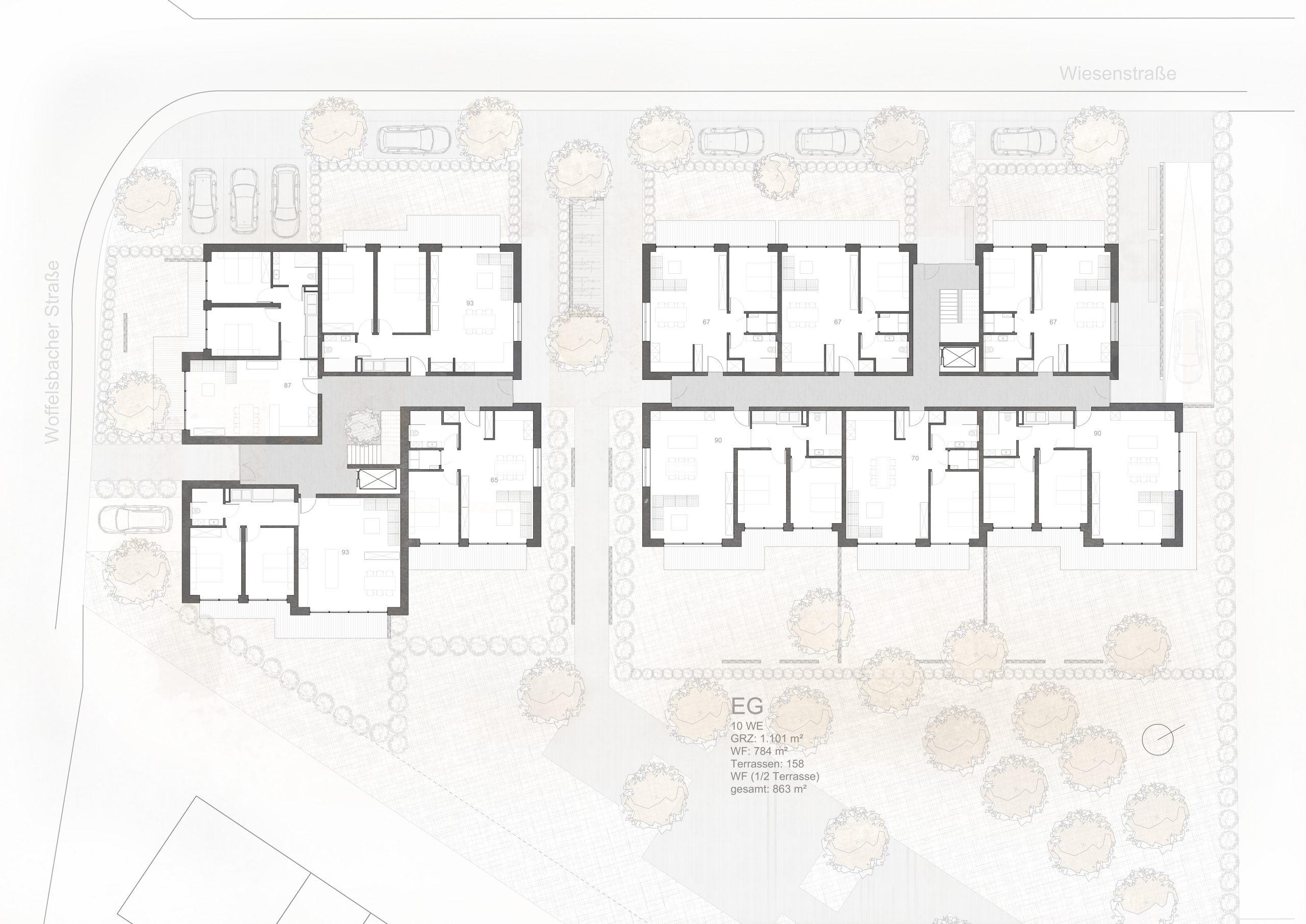 Mit einer Grundfläche von ca. 1.100 m² und 2,5 Geschossen umfasst die Anlage 29 Wohnungen zwischen 57 und 120 m². Unterschiedlich geschnittene Grundrisse ermöglichen vielseitige Nutzung – von dauerhaftem Wohnen bis zur naturnahen Ferienresidenz am Tor zur Eifel.