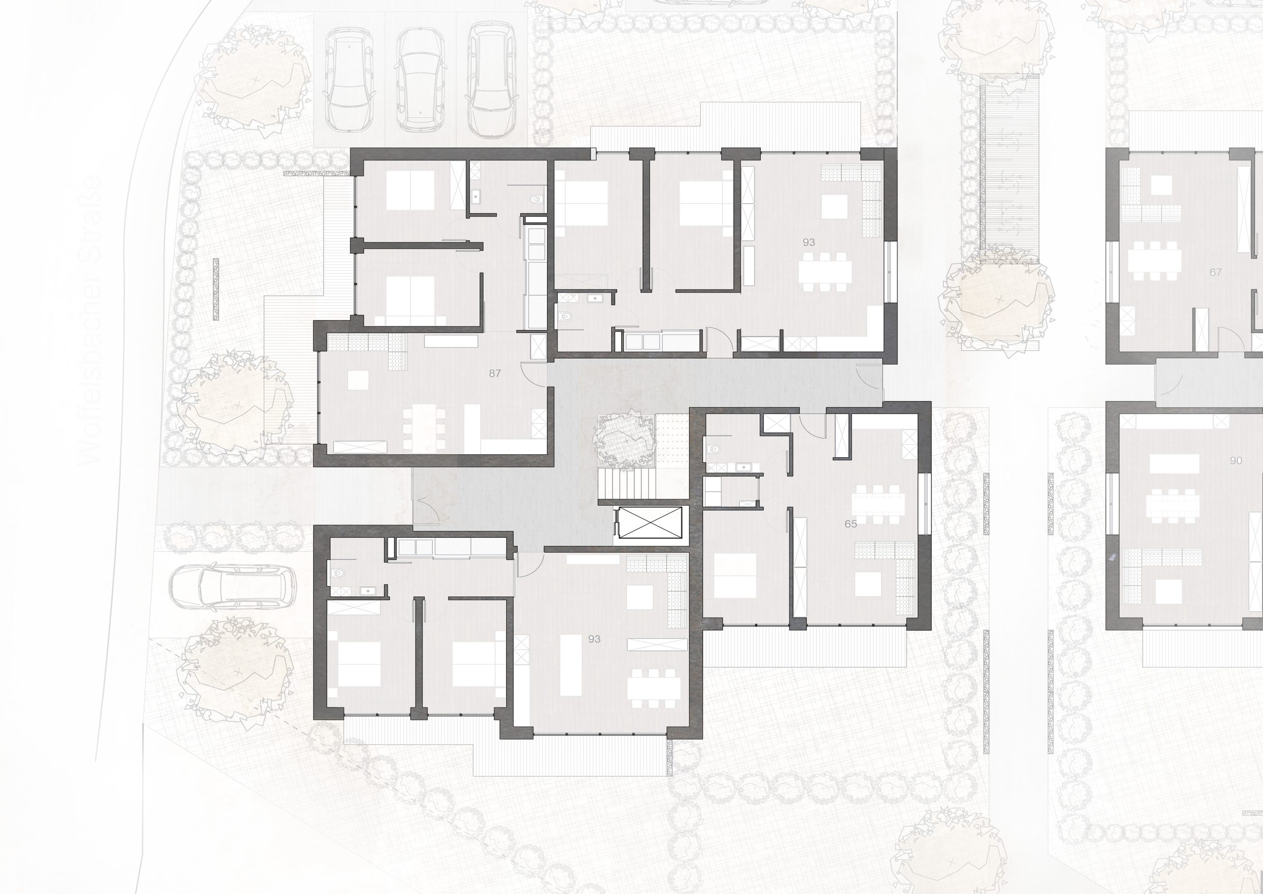 Nur wenige Gehminuten vom Westufer des Rursees entsteht in Rurberg ein Wohnprojekt, das Naturverbundenheit und zeitgemäßes Wohnen auf besondere Weise verbindet. Die Wohnanlage – bestehend aus zwei Einzelgebäuden auf einem rund 4.000 m² großen Grundstück – fügt sich harmonisch in die stille Landschaft ein und spiegelt die Idee nachhaltiger Architektur wider.